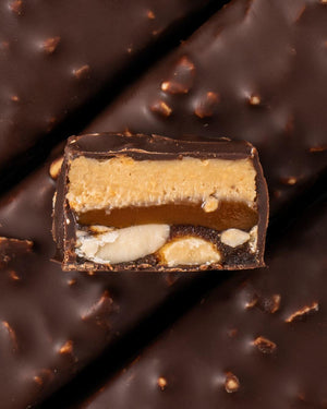 These are low-calorie vegan bars that are guaranteed to boost your mood 🤭. Just so you know: up to 160 calories and less than 1 gram of sugar per bar! We’ve combined the best of the best: chocolate, caramel, and nuts. We added some crunch for fun and 10 vitamins and minerals for your well-being 💆♀️.